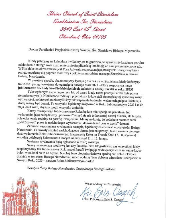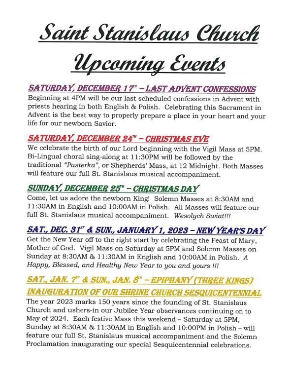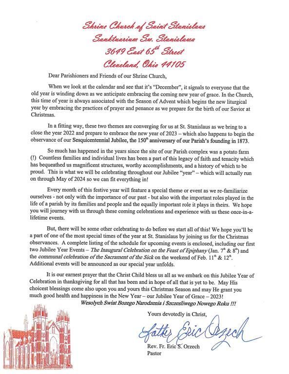 2022 Christmas Schedule and Letter from Fr. Eric